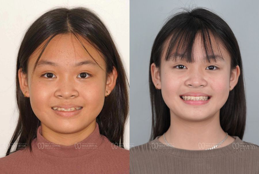 Trước khi niềng, răng của Loan mọc lệch, khấp khểnh khiến nụ cười chưa được tự tin. Sau quá trình chỉnh nha, hàm răng đã đều đẹp, khớp cắn cải thiện rõ rệt và gương mặt cân đối hơn.