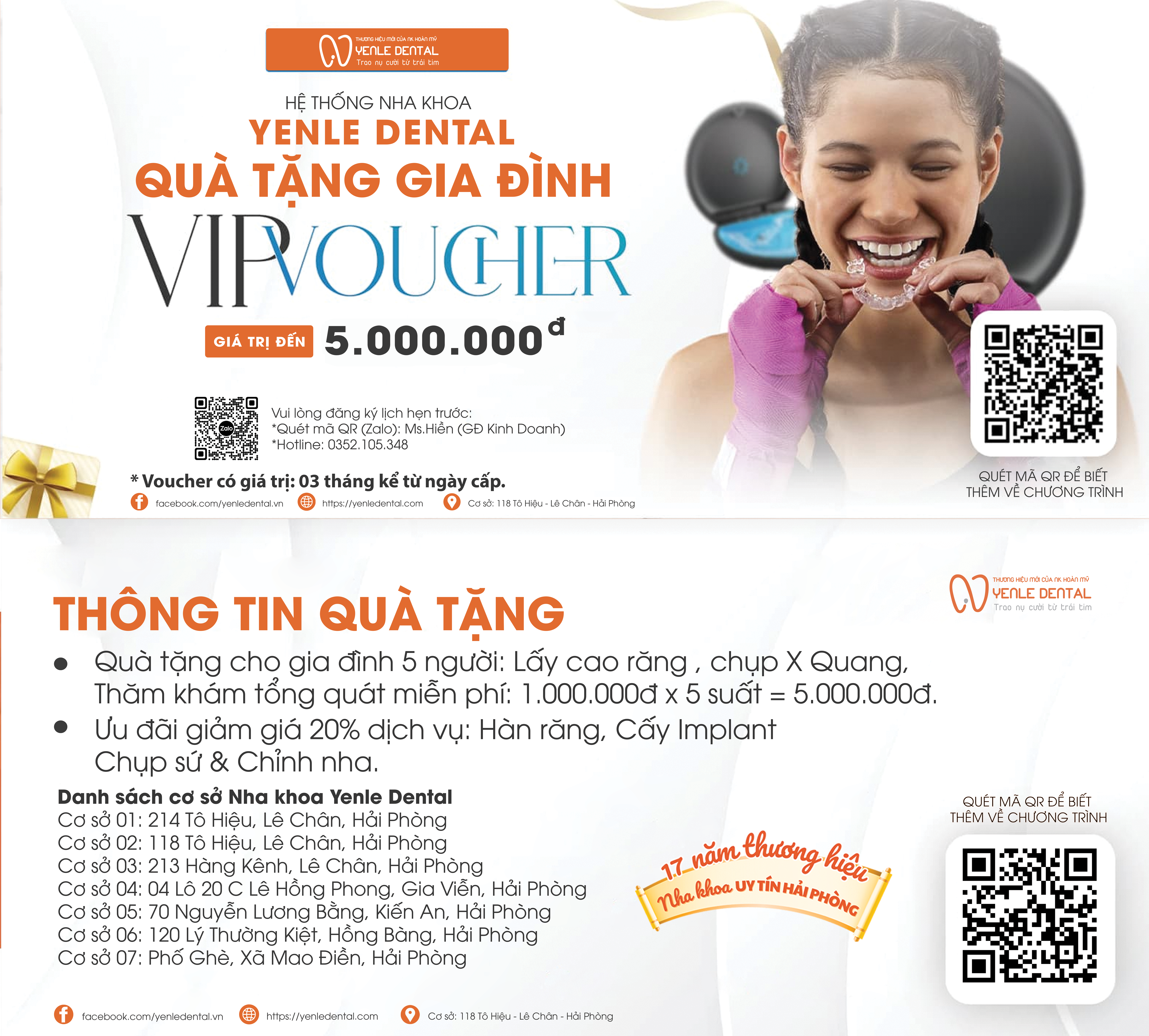 Bạn đang tìm kiếm một món quà ý nghĩa để chăm sóc sức khỏe răng miệng cho cả gia đình? Hệ thống Nha Khoa Yenle Dental mang đến chương trình VIP Voucher quà tặng gia đình với giá trị lên đến 5.000.000đ – cơ hội tuyệt vời để cả nhà cùng trải nghiệm dịch vụ nha khoa cao cấp, an toàn và hiện đại.